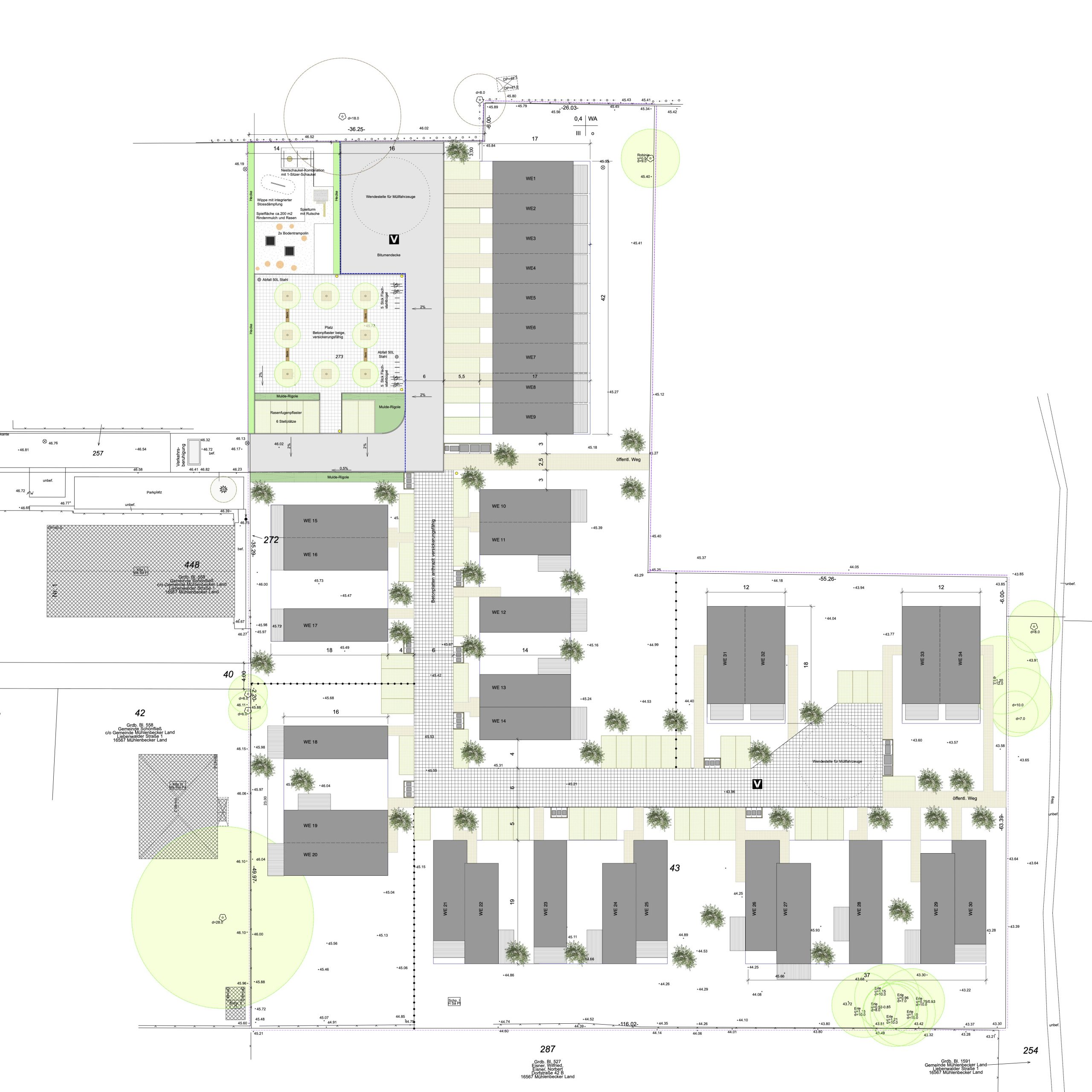 Errichtung einer ökologischen Holzhaussiedlung mit 34 Wohneinheiten